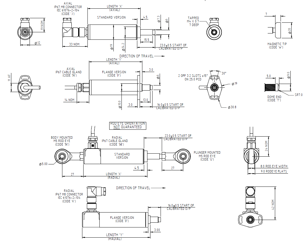 The sensor is very robust, the body and push rod being made of stainless steel for long service life and environmental resistance. It is particularly suitable for OEMs seeking good sensor performance for arduous applications such as industrial machinery where cost and reliability is important.